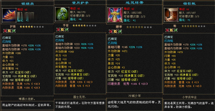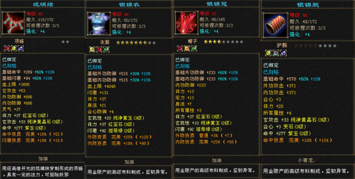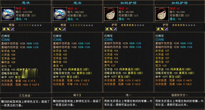 这个号还有个亮点,他所有的戒指护符都是四属性——没错四属性5星小极品,咱不能带不起6、7、8星,但是必须都得是四属性!